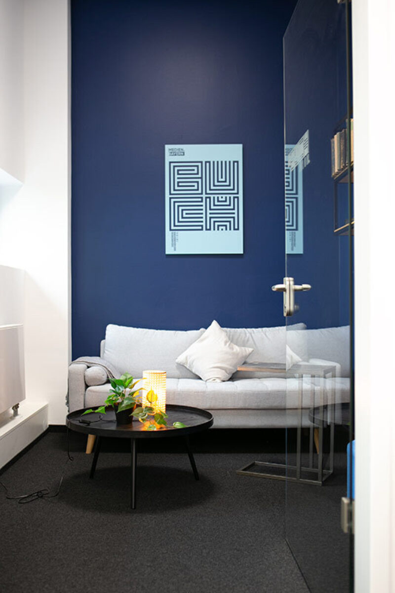 Wir bieten insgesamt 26 Arbeitsplätze (4er und 6er Inseln), die du mithilfe unseres digitalen Buchungssystems vorab reservieren kannst. Auch unsere Meetingräume sowie die Küche stehen dir zur Nutzung frei.
