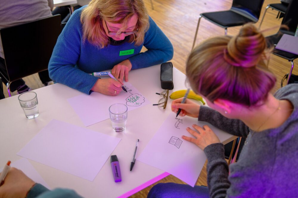 Alles begann mit Stift und Papier: Die Führungskräfte sollten ihr Projekt skizzieren. Ein erster Schritt, um Ideen sichtbar zu machen.