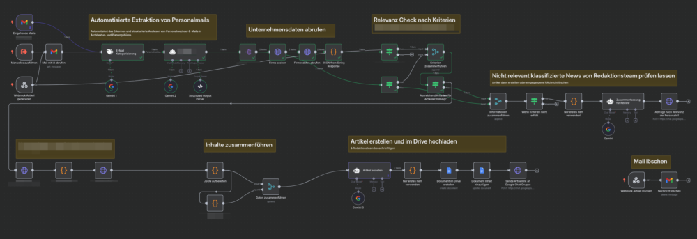 Vom E-Mail-Eingang bis zum Artikellayout: Der neue Prozess erkennt Führungswechsel automatisiert und stellt der Redaktion passende Entwürfe direkt bereit.