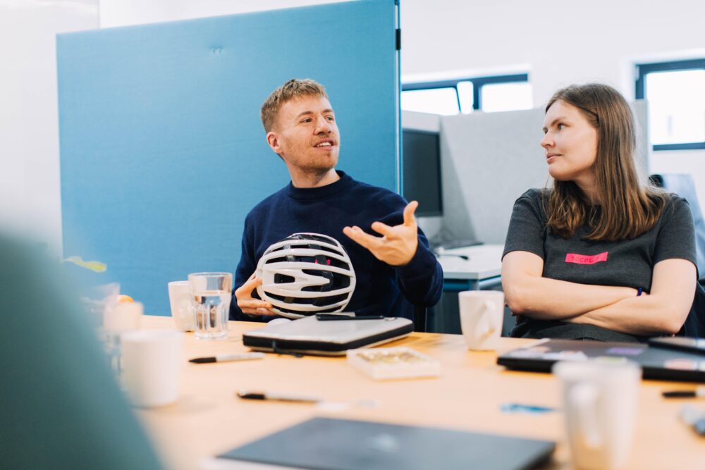 Als Sinnbild für die bevorstehende Beta-Phase von plastics.ai brachte Tyll einen Fahrradhelm mit. Der Praxistest unter echten Marktbedingungen rückte näher. Und das Team bereitete sich darauf vor, Sicherheit loszulassen und Nutzer:innenfeedback aktiv zu integrieren.