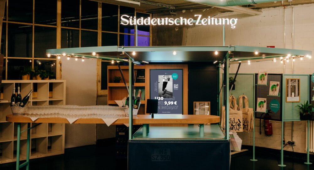 Zur digitalen Kampagne kam ein physischer Test: Die SZ war mit einem eigenen Stand auf dem „Oben Ohne“-Festival vertreten. Das Abo-Modell wurde dort vorgestellt, QR-Codes führten zu geöffneten Artikeln und zum Abo, das Gespräch mit der Zielgruppe stand im Vordergrund.