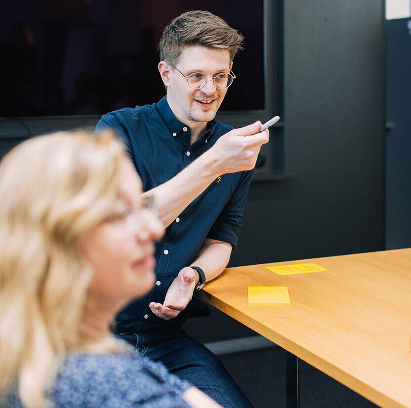 Auf dieser Basis entwickelten David und Thomas gezielte Interviewleitfäden. Thomas führte die 60- bis 120-minütigen Gespräche mit allen relevanten Abteilungen und nutzte dabei seine methodische Erfahrung, um offene Fragen gezielt einzusetzen, unterschiedliche Perspektiven einzufangen und widersprüchliche Positionen für die weitere Arbeit nutzbar zu machen.