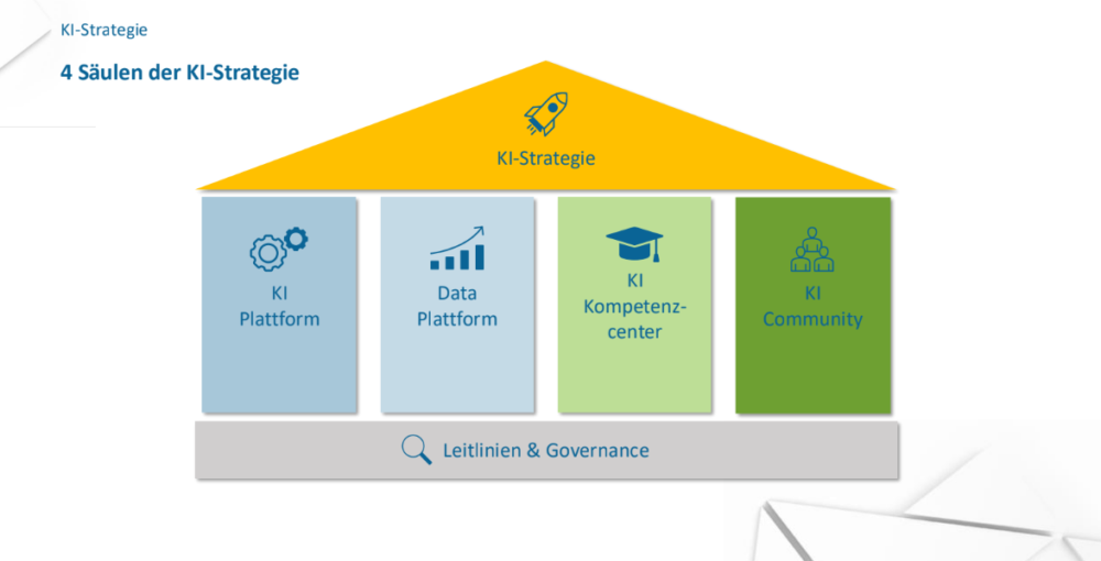 Vor Beginn der Pilotprojektphase wurden im Rahmen anderer Teilprojekte bereits vier strategische Säulen definiert, die technologische, organisatorische und kulturelle Anforderungen bündeln und die zentralen Handlungsfelder der künftigen KI-Strategie markieren.