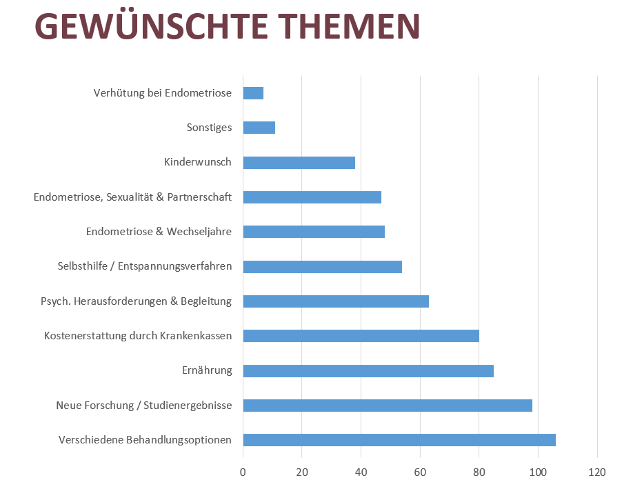 Besonders starkes Interesse zeigen die Teilnehmenden an Behandlungsmöglichkeiten, neuen Studien sowie Ernährung.
