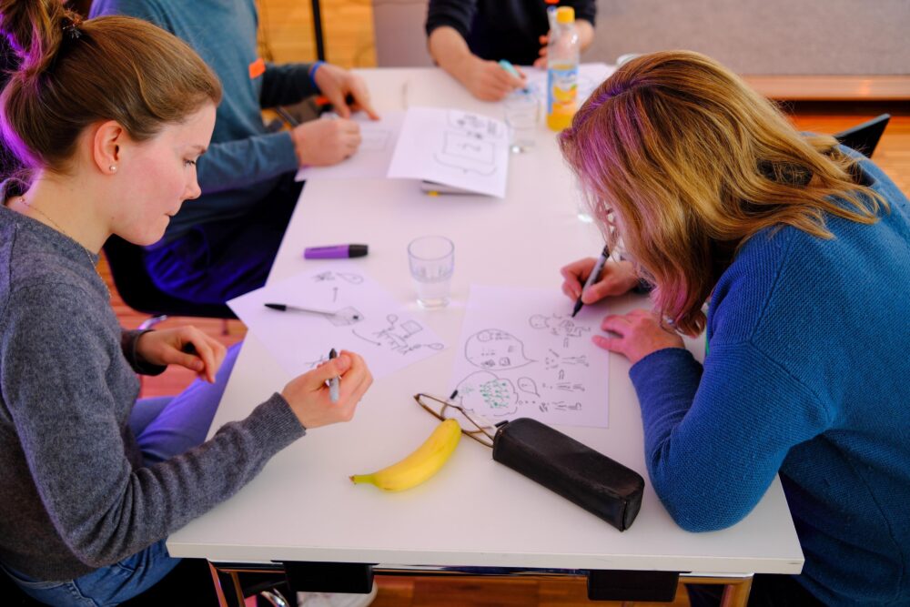 Alles begann mit Stift und Papier: Die Führungskräfte sollten ihr Projekt skizzieren. Ein erster Schritt, um Ideen sichtbar zu machen.